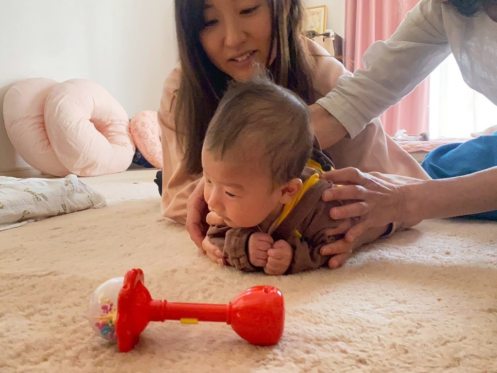 レッスンでは、解決のためのヒントを赤ちゃんに伝えていきます。遊んだり、環境を整えたり。